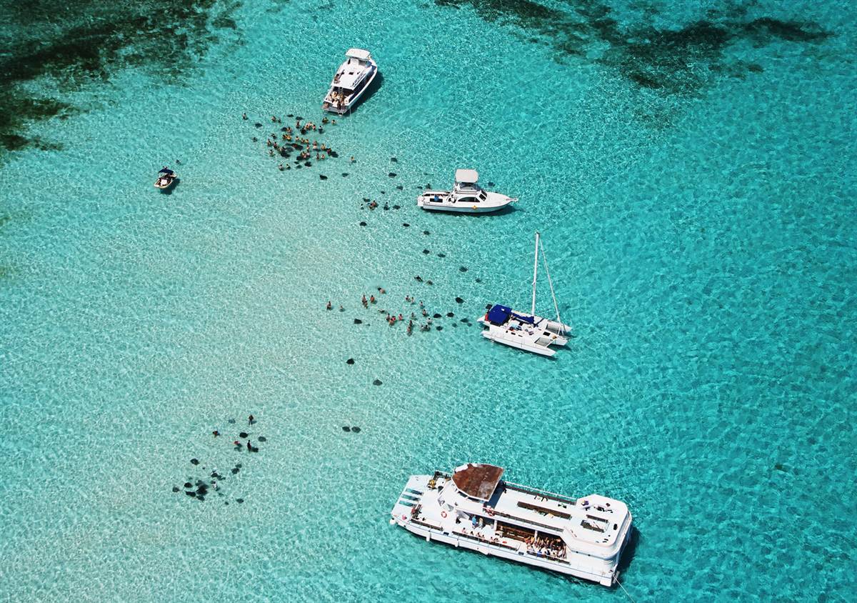 Одна из достопримечательности Каймановых островов – это очень популярная среди туристов отмель Город скатов (Stingray City). Это – единственное место в дикой природе, где можно поплавать рядом с южно-атлантическими скатами.